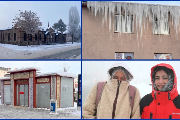 Bina çatılarında uzun buz sarkıtlarının oluştuğu ilçede, araç sahipleri soğuk hava nedeniyle arabalarına battaniye sardı, bazı donan arabalar zor çalıştı.