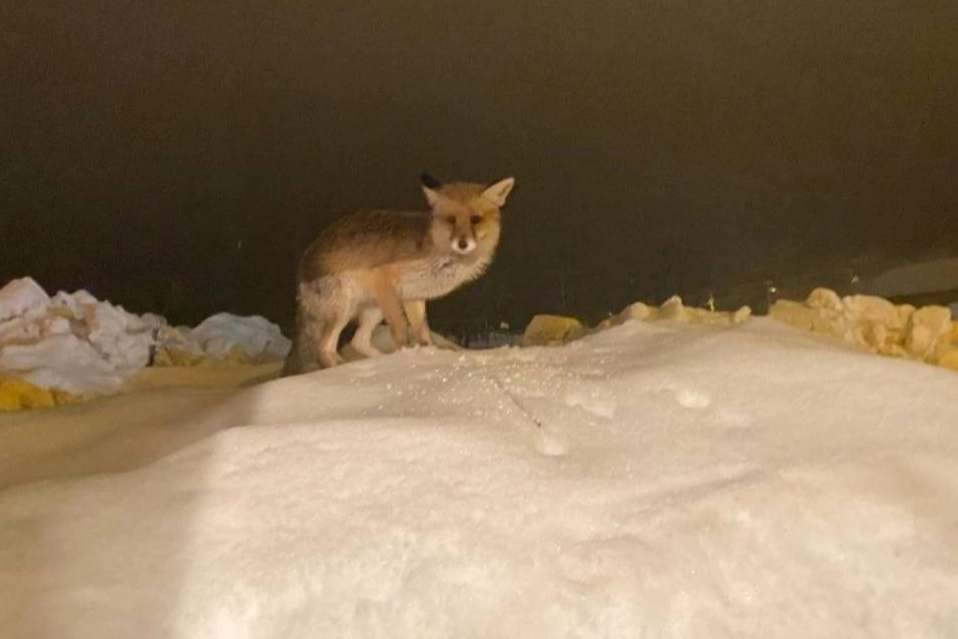 Zorlu kış şartları nedeniyle yiyecek bulamayan tilkiye yemek veren vatandaş, "O yedikçe ben mutlu oldum. Bir canı doyurmuş oldum" dedi.