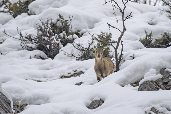 Kar kalınlığının yer yer 2 metreyi aştığı milli parkta, şu sıralar yaban keçileri, domuzlar ve akbabalar besin bulmakta zorlanıyor.
